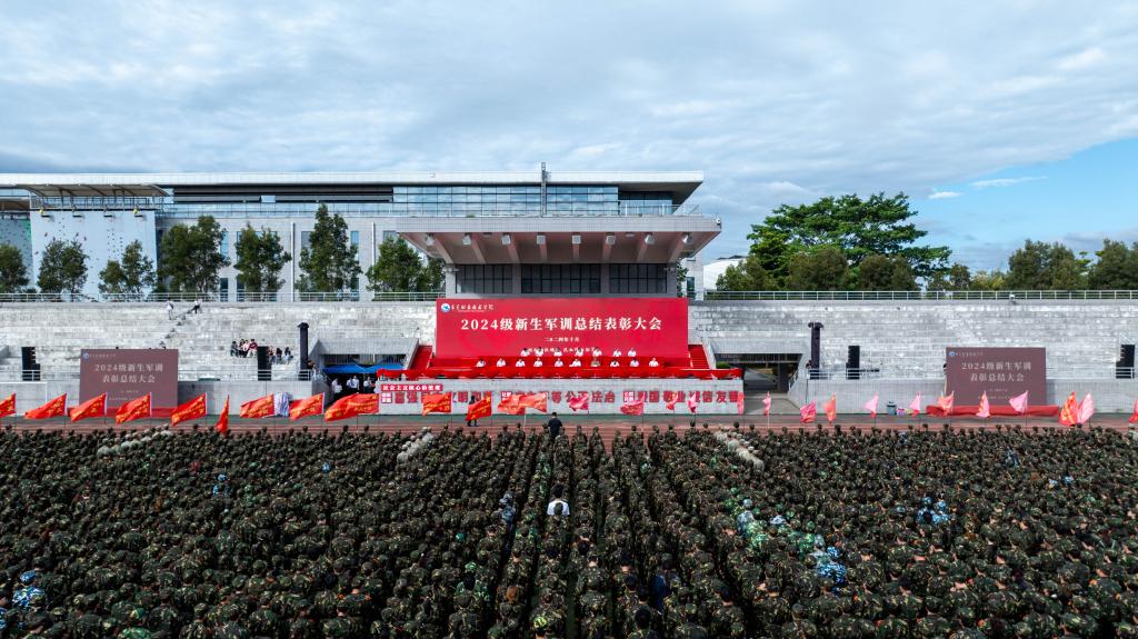 10月28日上午,我校2024级新生军训总结表彰大会在学校田径运动场举行。学校党委副书记、校长贺定修,党委委员、副校长杨云奇,承训部队领导和教官,我校相关部门负责人,各二级学院专职副书记、新生辅导员以及2024级全体新生参加大会。会议由保卫处处长刘高明主持。