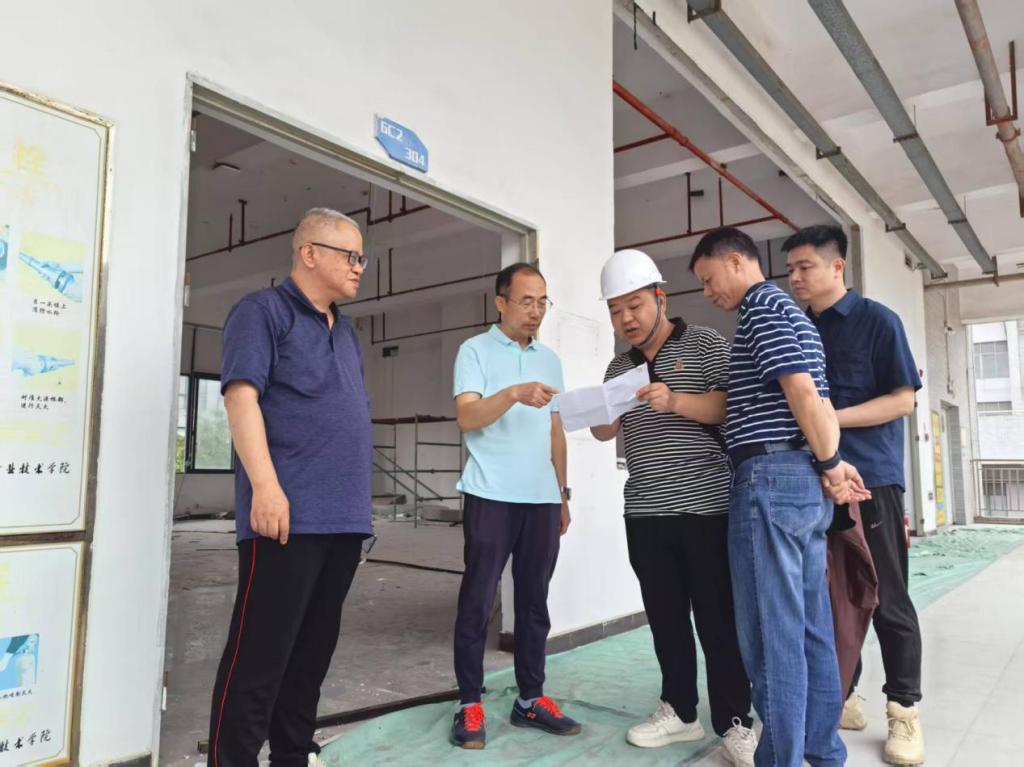 贺定修校长一行首先来到校园在建施工项目现场,仔细查看工地施工相关情况,重点检查了动火作业、高空作业等高风险作业的安全管理流程,并针对检查中发现的动火作业没有做隔离措施和消防设施被遮挡的问题,要求施工单位立整立改,并加强施工人员安全教育培训。