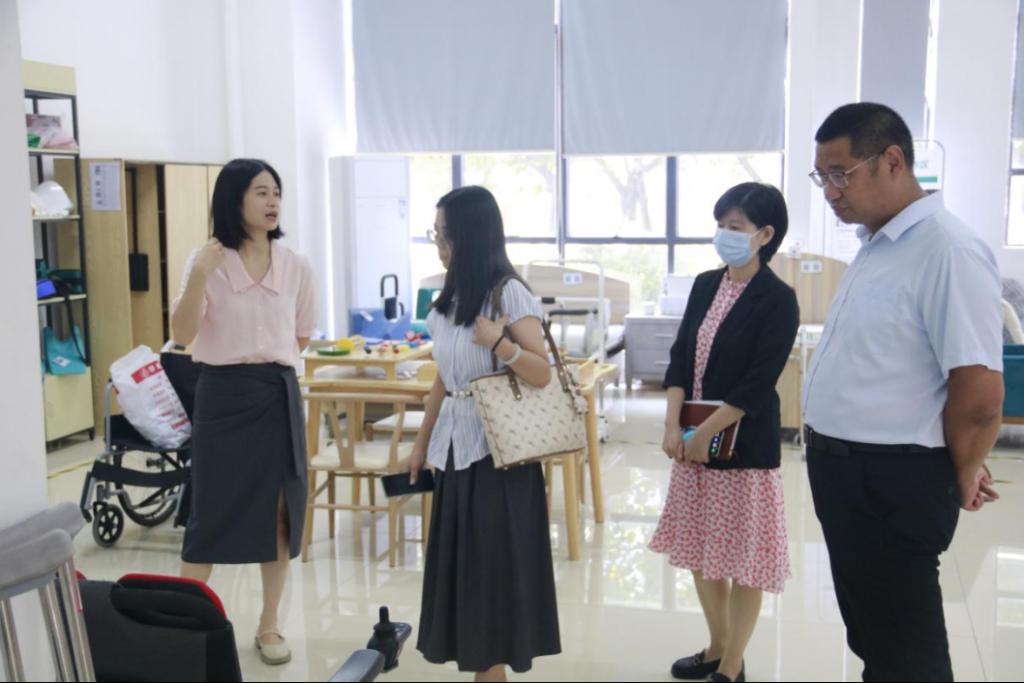 在座谈会开始前,参会人员一行在我校卫生健康学院副院长董全斌的陪同下来到我校康复辅具产学研示范中心进行参观交流。