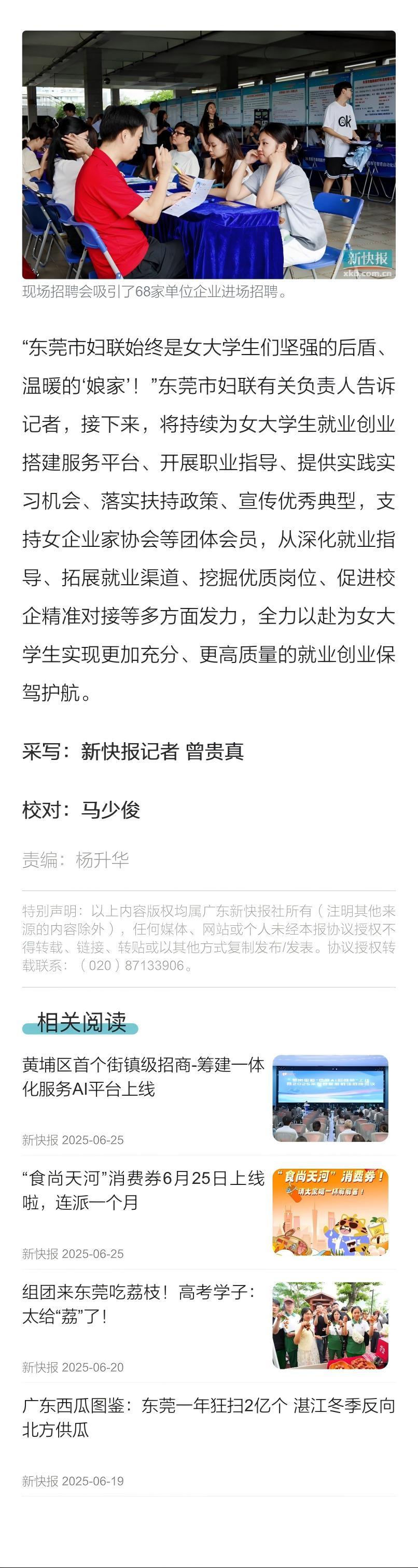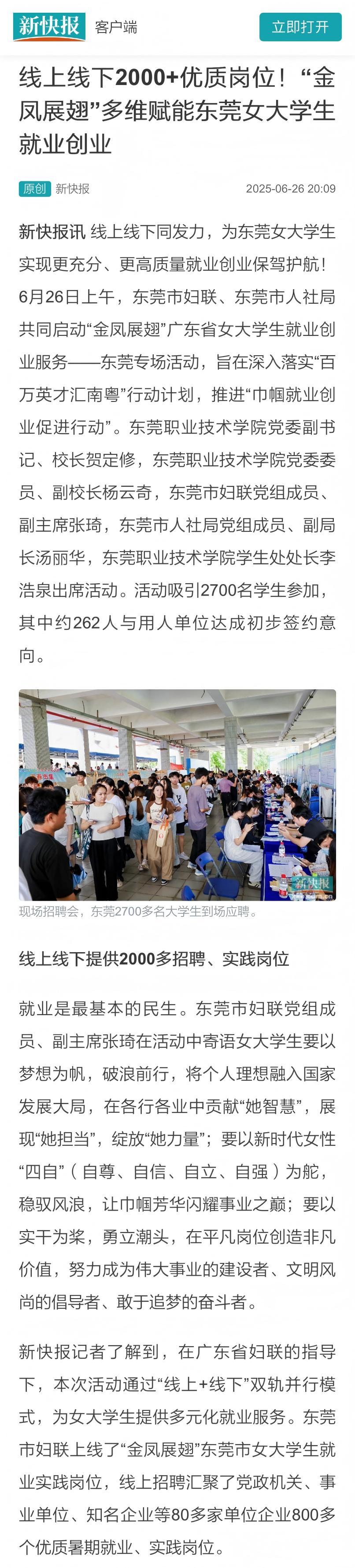 【新快报】 线上线下2000+优质岗位!“金凤展翅”多维赋能东莞女大学生就业创业